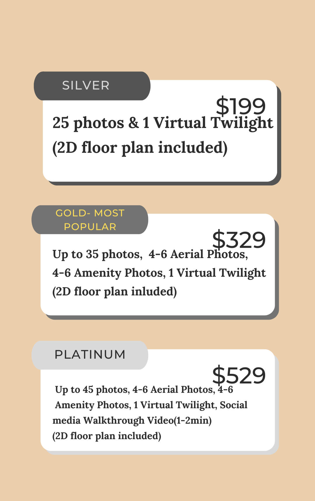 All interior shoots include a basic 2D floor plan with interior room measurements. If you don't find the service that you're interested in listed, please give us a call to discuss options!